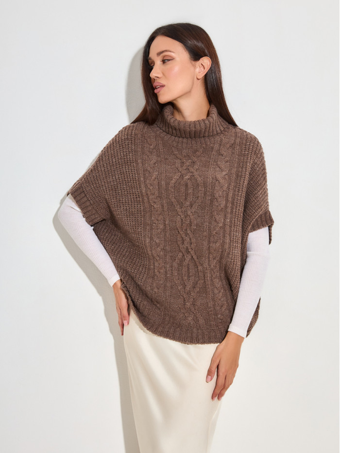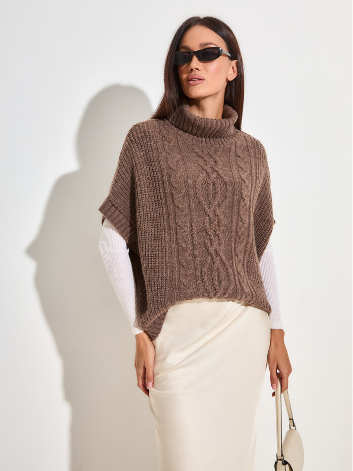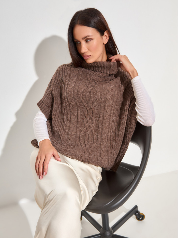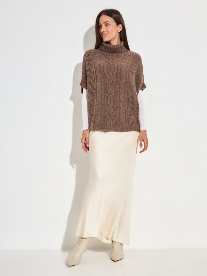 Наименование для сайта | Жилет теплый со спущенным рукавом коричневый меланж цвет ВТД-53 |
