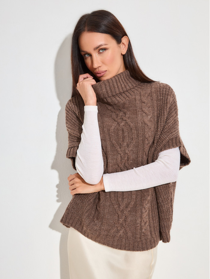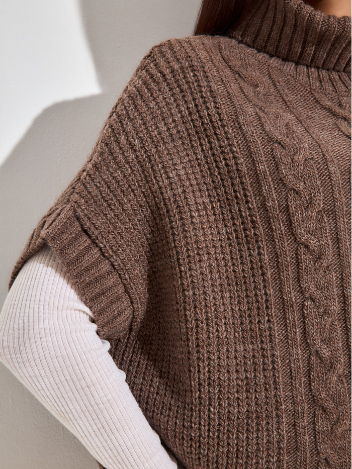 Жилет теплый со спущенным рукавом коричневый меланж цвет ВТД-53